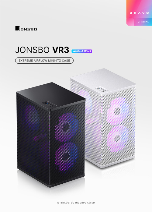 브라보텍에서 3면 풀메쉬 패널 구성과 수랭 쿨러 호환성의 탁월한 쿨링퍼포먼스에 고성능 그래픽카드와 다양한 스토리지 확장성을 갖춘 M-ITX 미니타워 케이스 JONSBO VR3 모델을 출시한다.