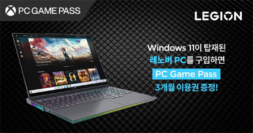 레노버가 윈도우11(Windows11)이 탑재된 레노버 PC 구매 고객을 대상으로 ‘PC 게임 패스(PC Game Pass)’ 3개월 무료 이용권을 증정한다고 밝혔다.