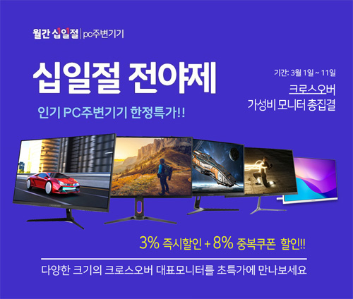 크로스오버는 자사의 인기 빅포터블, 게이밍 및 고해상도 모니터 14종을 대상으로 11번가 3월 십일절 전야제를 진행한다.