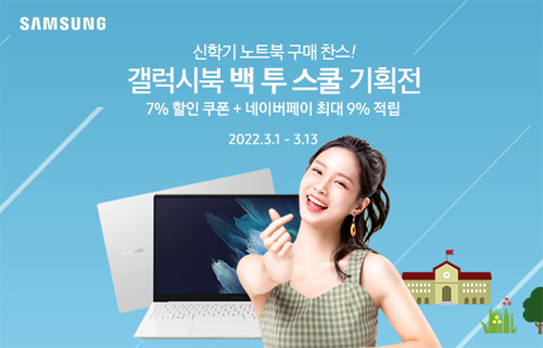 유니씨앤씨는 3월 신학기 시즌을 맞아, AMOLED 디스플레이와 초슬림 초경량 디자인으로 뛰어난 휴대성을 자랑하는 삼성 갤럭시북 프로 / 프로360 / 프로360 5G을 대상으로 최대 7% 할인 쿠폰과 네이버페이 최대 9% 적립, 12개월 무이자 할부 등의 푸짐한 혜택이 증정되는 ‘삼성 갤럭시북 백 투 스쿨’ 프로모션을 2022년 3월 1일부터 3월 13일까지 네이버 스마트스토어를 통하여 단독 진행한다.