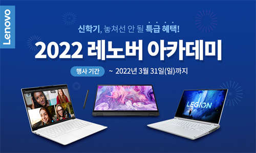 레노버가 신학기를 맞아 3월까지 온라인 마켓에서 ‘2022 레노버 아카데미 신학기 기획전’을 실시한다.