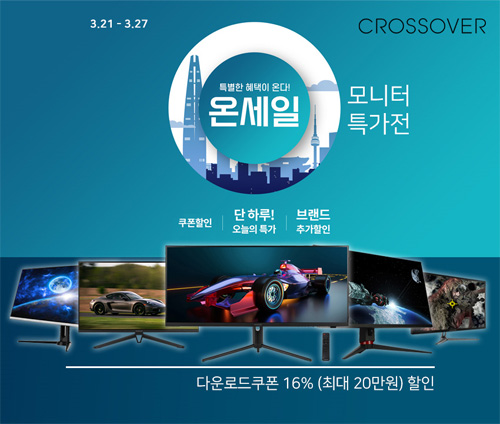 크로스오버는 자사의 인기 게이밍 모니터 25종을 대상으로 롯데온 3월 온세일 특가 할인전을 진행한다.