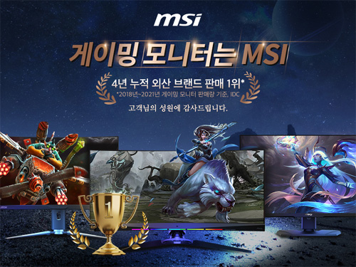 세계적인 시장조사 전문기관 IDC가 공개한 자료에 따르면, MSI는 게이밍 모니터 시장 진출을 선언하고 본격적인 제품 판매를 시작한 2018년 이후 4년간 누적 판매량에서 외산 브랜드 중 1위를 기록한 것으로 확인됐다. 같은 기간 세계에서 가장 빠르게 성장하는 게이밍 모니터 브랜드였던 MSI는 작년 2월 누적 판매량 3백만 대 달성 소식을 전한 바 있어, 올해 더욱 더 늘어난 판매량 기록에 도전할 것으로 예상된다.