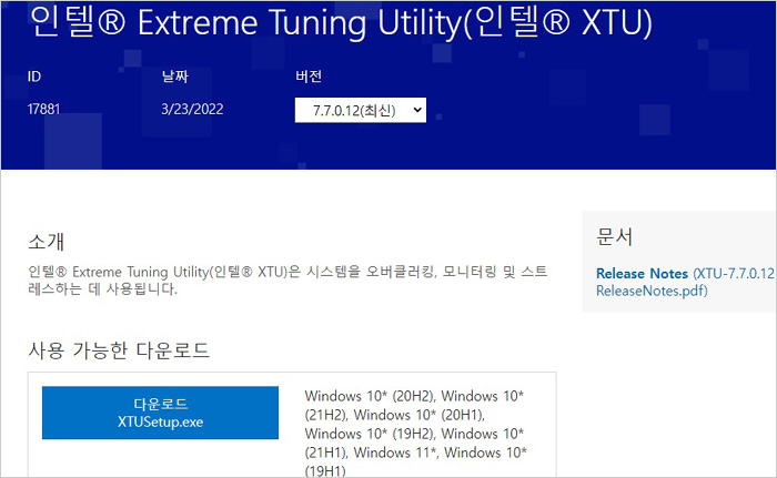 단, 인텔 퍼포먼스 맥시마이저의 경우 아직까지 12세대 인텔코어용 S/W 는 발표되지 않아 사용할 수 없다. (11세대 인텔코어용 까지 출시된 상황이다.)
