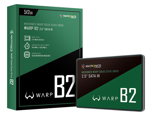 마이크로닉스는 자사의 SATA 6Gbps 기반 2.5인치 고속저장장치(SSD)인 WARP(워프) B1의 뒤를 이을 WARP B2 SSD를 출시한다. 128GB·256GB·512GB 등 세가지 라인업으로 구성되는 신제품은 기존 대비 안정적인 성능과 향상된 데이터 내구성을 확보한 점이 특징이다.
