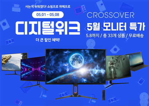 크로스오버는 자사의인기 게이밍 모니터 33종을 대상으로 위메프 5월 디지털위크 특가전을 실시한다고 밝혔다.