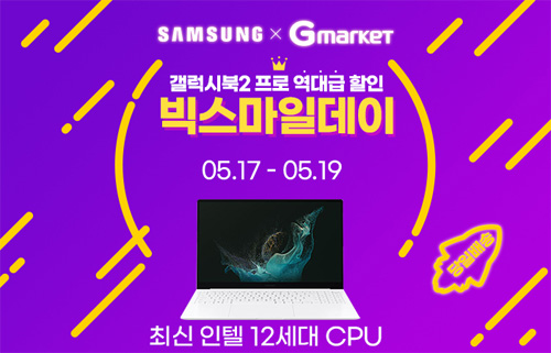 유니씨앤씨는 가정의 달을 맞아 최신 인텔 12세대 CPU 탑재와 초슬림 초경량 디자인으로 뛰어난 휴대성을 자랑하는 삼성 갤럭시북2 프로 NT950XEW-A51A 모델을 대상으로 최대 44만원 중복 할인과 함께 당일 배송, 푸짐한 사은품이 증정되는 ‘빅스마일데이 초특가’ 프로모션을 2022년 5월 17일부터 5월 19일까지 G마켓을 통하여 진행한다.