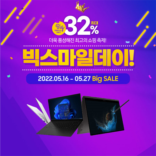 엔씨디지텍에서 오는5월 27일까지 삼성노트북 신모델 갤럭시북2 모델과 인기모델들을 대상으로 최고의 혜택과 할인이 가득한 이베이 ‘빅스마일 데이’ 특별 할인 행사를 G마켓과 옥션 행사 기획전 페이지를 통해 진행한다고 밝혔다.