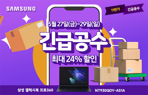 유니씨앤씨는 Super AMOLED 디스플레이와 최신 인텔 11세대 타이거레이크, 그립감이 뛰어난 S펜이 탑재된 삼성 갤럭시북 프로360 NT930QDY-A51A 대상으로 최대 34만원 중복 할인과 푸짐한 혜택이 주어지는 ‘긴급공수’ 프로모션을 2022년 5월 27일부터 5월 29일까지 11번가를 통하여 단독 진행한다.