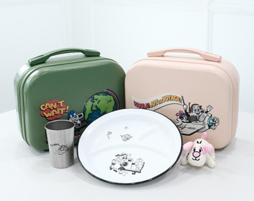 그림 속에서 보던 천진난만한 표정을 그대로 재현한 훌라 인형 키링은 아기자기한 사이즈의 봉제인형으로 탄생해 입체감과 귀여움을 더했으며, 가방 등에 달아 장식하거나 액세서리 소품으로 활용하기에도 좋다. 레디백은 핑크와 그린 두 가지 색상으로, 여행을 즐기는 조이와 훌라의 모습이 프린팅되어 있어 여름 휴가 분위기가 물씬 느껴진다. 여행, 캠핑, 피크닉 등에서 한 손에 가볍게 들고 다닐 수 있는 아담한 사이즈로, 뒷면 밴드로 대형 캐리어에 고정하기도 용이하다. 법랑 재질의 접시와 스테인리스 컵은 가볍고 탄탄한 내구성으로 등산이나 캠핑 등 야외 활용도가 뛰어나다.