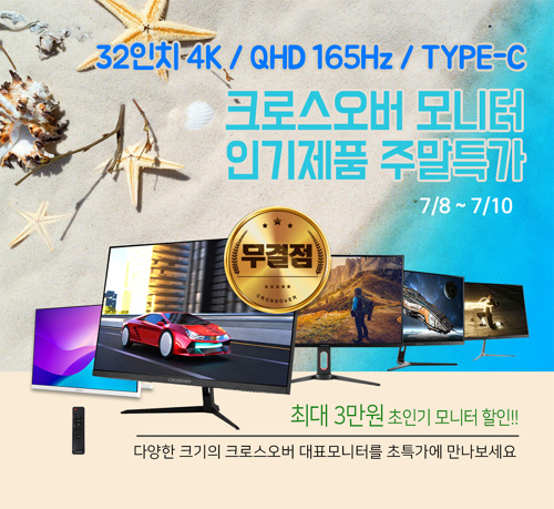 크로스오버는 자사의 인기 포터블, 게이밍, 고해상도 모니터들을 대상으로 네이버 주말 특가전을 펼친다고 밝혔다. 이번 행사동안 크로스오버의 빅포터블, 24, 27, 32형 등 다양한 모니터들이 저렴하게 판매된다.