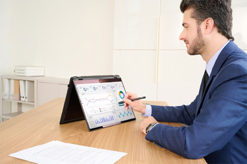 '써밋 E16 Flip A12UCT'는 16.8mm의 얇고 1.9kg의 가벼운 무게와 10시간 사용 가능한 대용량 배터리로 언제 어디서나 장시간 업무에 집중할 수 있다. 또한 개인정보와 데이터 해킹을 방지하는 ▲TPM 2.0 ▲토비 어웨어(Tobii Aware) ▲타일(Tile) 기술 등을 지원해 기업에서 요구하는 수준 높은 보안성을 갖췄다.
