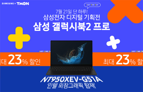 유니씨앤씨는 여름휴가 시즌을 맞아 최신 인텔 12세대 CPU와 인텔 아크 그래픽 탑재, 초슬림 초경량 디자인으로 뛰어난 휴대성을 자랑하는 삼성 갤럭시북2 프로 NT950XEV-G51A 모델을 대상으로 최대 39만원 중복 할인과 푸짐한 사은품이 증정되는 ‘삼성 디지털 기획전’ 프로모션을 2022년 7월 21일 단 하루 티몬을 통하여 단독 진행한다.