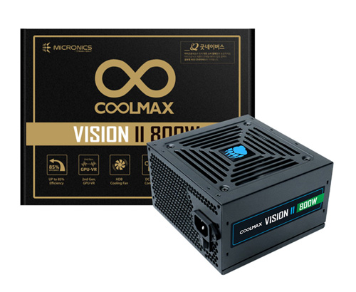 쿨맥스 비전 II 파워서플라이는 기존 쿨맥스 비전의 장점 중 하나로 꼽히는 출력 효율과 냉각 성능을 더욱 강화하고 최신 시스템이 요구하는 전압 출력 안정성을 더했다. 특히 최근 프로세서와 그래픽카드 등이 주로 사용하는 +12V 전압을 안정적으로 제공하는 2세대 GPU-VR(GPU   Voltage Regulation)을 제품에 도입하면서 파워서플라이에 부하가 최대로 인가되어도 변동률을 ±1% 이내(800W 기준)로 억제한다. 쾌적한 PC 사용을 위해 최대 85% 이상의 출력 효율과 800W 대용량을 제공하기에 사용자는 조금 더 여유로운 시스템 구성이 가능하다. 이 외에 내부 온도에 따라 자유롭게 회전수를 조절하는 120mm 유압구조 베어링 냉각팬은 낮은 소음과 넉넉한 풍량으로 파워서플라이를 최적의 상태로 유지해준다.