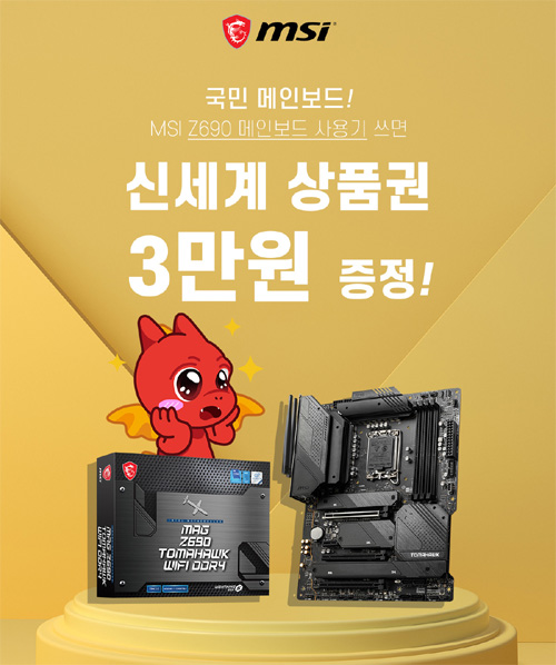 MSI는 여름방학을 맞아 MSI Z690 메인보드 구매 고객을 대상으로 총 5만원 경품을 증정하는 사용기 이벤트를 진행한다고 밝혔다.