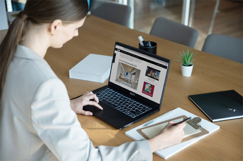 19.3mm의 슬림한 두께와 1.4kg의 가벼운 무게, 현대적인 블랙 디자인은 어떤 장소에서도 자연스럽게 어우러지며 휴대 가능하다. FHD IPS 타입 광시야각 디스플레이에 300nits 밝기와 안티글레어 패널을 적용하여 각도에 따른 색상 왜곡을 최소화하고 눈부심 없이 밝고 생생한 색감을 구현한다. 사무실, 학교, 카페 등 야외에서도 간편하게 충전 가능한 PD 충전 기능을 지원하여 배터리 걱정 없이 장시간 업무에 집중할 수 있다. 또한 어두운 곳에서도 사용 가능한 화이트 LED 키보드 및 편안한 타이핑과 향상된 쿨링 성능을 제공하는 드롭다운 힌지 설계로 막힘 없는 작업이 가능하다.