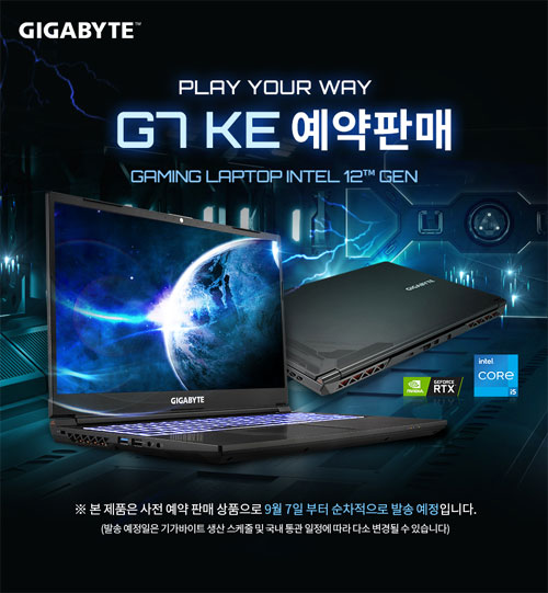 에스라이즈는 최신 인텔 12세대 엘더레이크 CPU가 탑재된 기가바이트의 G시리즈 게이밍 노트북 사전 예약판매를 진행한다.