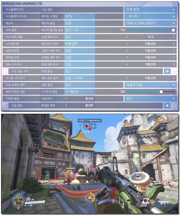 CPU의 성능이 향상된 만큼 내장그래픽의 성능도 좋아져 LOL이나 오버워치 정도의 게임은 부드럽게 실행할 수 있다. 12세대 인텔코어 프로세서의 경우 아예 게임은 생각도 하지 못했던 예전의 내장그래픽과는 완전히 다른 모습을 보여주고 있다.