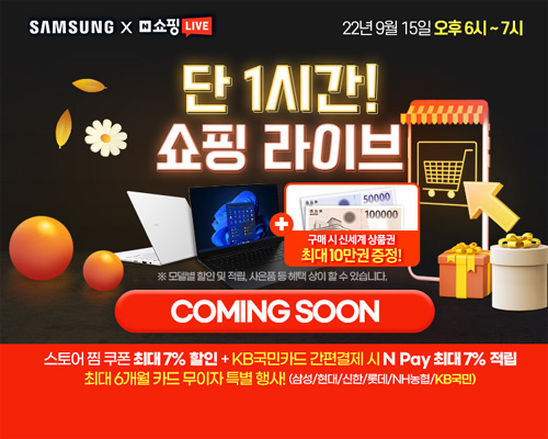엔씨디지텍에서 9월 15일 오후 6시부터 오후 7시까지 1시간 동안 네이버 쇼핑라이브를 통해 삼성노트북 인기모델들을 대상으로 특별 할인 및 사은품증정 이벤트 등 다양한 혜택이 가득한 ‘추석 용돈 FLEX’ 특별 기획 라이브방송을 진행한다고 한다.