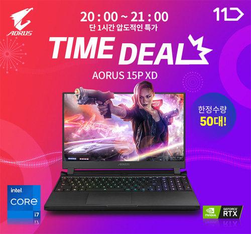 기가바이트에서 진행하는 이번 십일절 타임딜은 10월 11일 20시부터 21시까지 ‘단 한시간’동안 진행되며 기가바이트 프리미엄 게이밍 노트북인 어로스 15P XD를 선택쿠폰 11% (최대 20만), 중복쿠폰 20만원, 장바구니 쿠폰 3만원, 카드할인 5%(최대 10만원)의 파격적인 혜택을 적용 받아 구매할 수 있다.