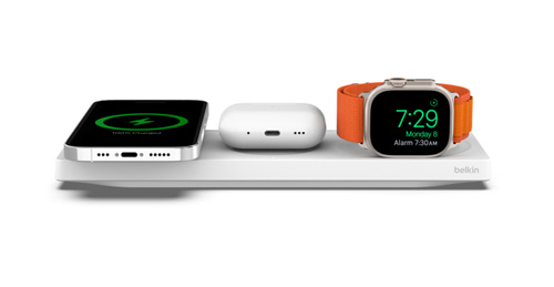 건축학적으로 영감을 받은 세련된 디자인에 스테인리스 스틸 및 순백색 무광택 매트 마감이 더해진 벨킨 부스트업 프로 3in1 맥세이프 15W 무선 충전 스탠드(BOOST↑CHARGE PRO 3-in-1 Wireless Charger with MagSafe 15W)는 애플의 “Made for MagSafe” 인증을 획득한 몇 안 되는 맥세이프 공식 인증 충전기 중 하나로, 사용자의 집 또는 사무실에서 신형 아이폰 14는 물론 아이폰 12 및 13, 애플워치 울트라와 애플워치 시리즈 7 및 8, 그리고 최신 에어팟 프로 2세대 모두 안전하게 고속으로 충전 가능하다. 또한 이 충전기는 애플워치 울트라를 90분만에 1%에서 100%까지 충전 가능하며, 어떤 탁상에 올려 두어도 우아한 느낌을 더하는 고성능 충전 스탠드 제품이다.