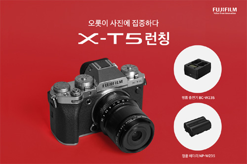 후지필름은 X-T5 정품 구매자를 대상으로 사은품 이벤트를 실시한다. 오는 17일(목)부터 12월 31일(토)까지 전국에 위치한 후지필름 공식 판매점에서 X-T5를 구매한 후 2023년 1월 7일(토)까지 정품 등록과 이벤트 신청을 마치면 정품 배터리 NP-W235와 정품 충전기 BC-W235를 제공한다.