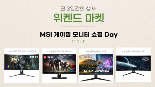 MSI는 국내 유명 이커머스 G마켓에서 진행하는 ‘위켄드 마켓’에 참여해 게이밍 모니터 대상으로 할인 행사를 진행한다.