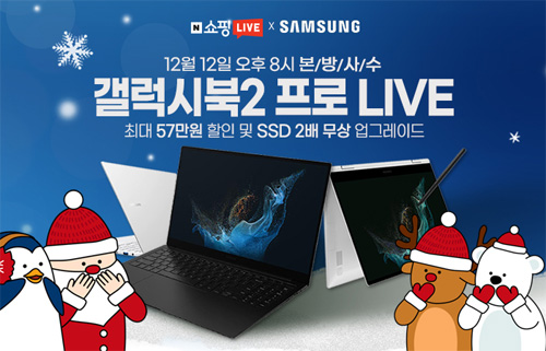 유니씨앤씨는 AMOLED 디스플레이와 초슬림 초경량 디자인으로 뛰어난 휴대성을 자랑하는 삼성 갤럭시북2 프로 / 프로360 / 갤럭시북 S 대상으로 최대 57만원 할인 혜택과 푸짐한 사은품이 증정되는 ‘갤럭시북2 프로’ 라이브 방송을 2022년 12월 12일 20시부터 단 1시간 동안 네이버 스마트스토어를 통하여 진행한다.