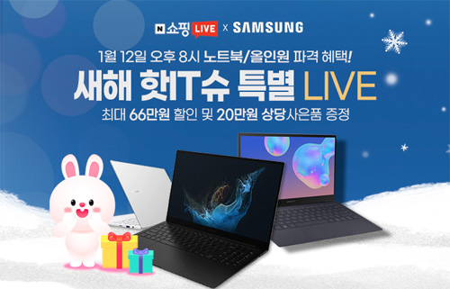 유니씨앤씨는 AMOLED 디스플레이와 초슬림 초경량 디자인으로 뛰어난 휴대성을 자랑하는 삼성 갤럭시북2 프로 / 프로360 / 올인원PC 등을 대상으로 최대 66만원 할인 혜택과 푸짐한 사은품이 증정되는 ‘갤럭시북 새해 핫IT슈 특별’ 라이브 방송을 2023년 1월 12일 20시부터 단 1시간 동안 네이버 스마트스토어를 통하여 진행한다.