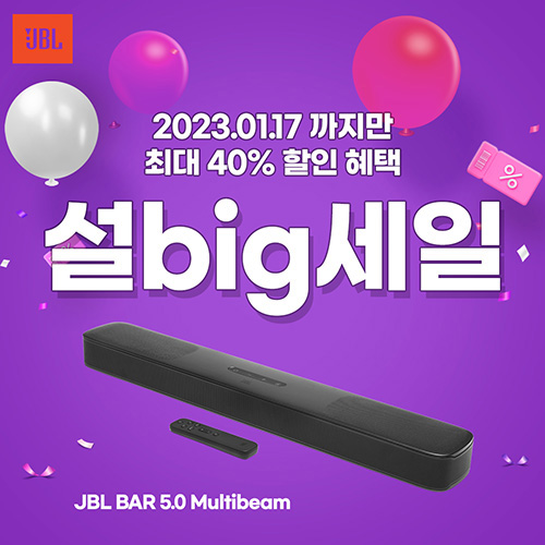 유니씨앤씨는 JBL BAR 5.0 Multibeam 돌비 애트모스 사운드바를 대상으로 파격적인 할인 혜택이 제공되는 ‘설빅세일’ 프로모션을 G마켓을 통해 2023년 1월 17일까지 진행한다.