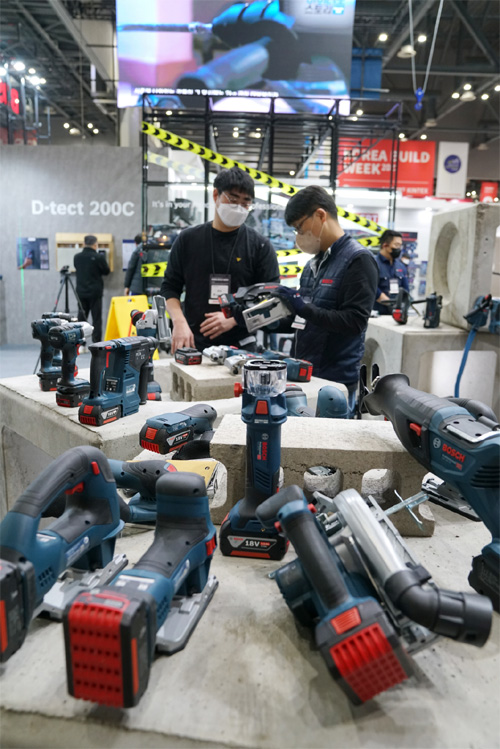 이번 전시회에서 보쉬는 △드릴드라이버 △임팩트 드릴드라이버 △임팩트 렌치 △로터리해머 △그라인더 △엑스락 그라인더 △원형톱 △컷쏘 △플런지쏘 △각도절단기 △테이블쏘 등 총 100여개 제품과 건설·건축, 인테리어, 배관, 창호, 전기, 자동차 수리 등 다양한 전문 작업에 최적화한 제품들을 전시했다.