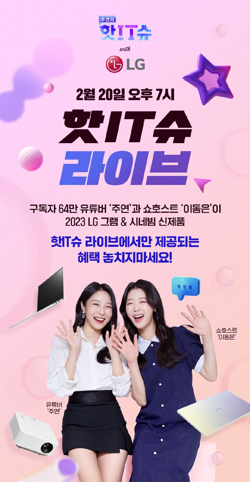 LG전자는 2월 20일 오후 7시 LG그램 2023 신모델을 대상으로 네이버 쇼핑라이브 핫IT슈 채널을 통해 특가 라이브방송을 진행한다고 밝혔다.