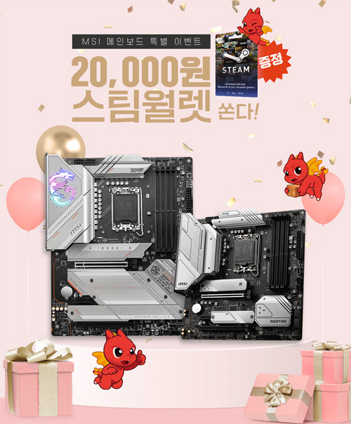 이벤트는 3월 1일부터 3월 31일까지 진행된다. 기간 내에 MSI 메인보드를 구매한 고객은 양식에 맞춰 사용기를 작성한 후 이벤트에 참여할 수 있으며, 경품으로는 최대 5만원의 네이버페이 모바일 상품권 및 최신 인기 게임을 구매할 수 있는 2만원의 스팀월렛을 증정하여 게이머를 응원한다. (단, 대상 제품 및 신청 방법 확인 필수)