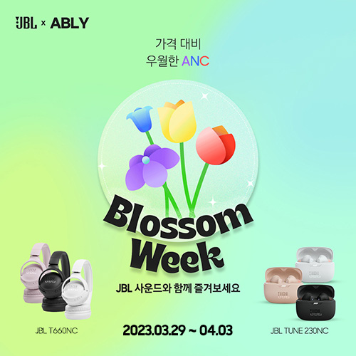 유니씨앤씨는 JBL의 액티브 노이즈 캔슬링 제품 2종을 대상으로 특별한 혜택가가 제공되는 ‘블라썸위크’ 프로모션을 에이블리를 통해 4월 3일 까지 진행한다.