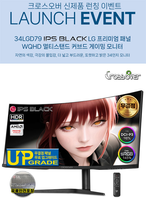 크로스오버가 34형 울트라와이드 모니터 ‘34LGD79 IPS PREMIUM 커브드 울트라 멀티스탠드’ 출시를 기념하고자 무결점 무료 업그레이드 및 특가 이벤트를 진행한다고 밝혔다.