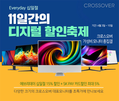 크로스오버는 자사의 인기 게이밍 및 고해상도 모니터 11종을 대상으로 11번가 2023년 4월 에브리데이 십일절 이벤트를 진행한다고 밝혔다.