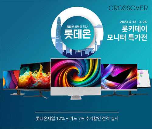 크로스오버는 자사의 인기 게이밍 모니터 123종을 대상으로 롯데온 4월 온세일세상 롯키데이 특가 할인전을 진행한다고 밝혔다.