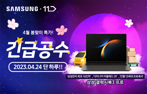 유니씨앤씨는 인텔 13세대 i5 프로세서와 고해상도 WQXGA+ AMOLED 디스플레이를 탑재한 삼성 갤럭시북3 프로 NT960XFT-A51A 대상으로 최대 43만원 중복 할인과 푸짐한 혜택이 가득한 ‘긴급공수’ 프로모션을 2023년 4월 24일 단 하루 동안 11번가를 통하여 진행한다.