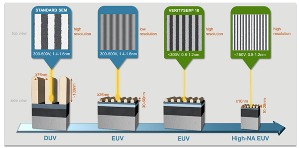 베리티SEM 10(VeritySEM 10)은 EUV(극자외선) 및 새롭게 부상하는 High-NA EUV 리소그래피 공정으로 패터닝된 반도체 디바이스 소자의 패턴 거리측정(CD)을 정밀하게 측정하도록 설계됐다.