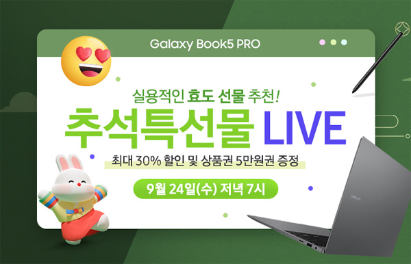 이번 방송에서는 최신 인텔 코어 울트라 시리즈 2와 WQXGA+ Dynamic AMOLED 2X 터치스크린을 탑재한 삼성 갤럭시북5 프로?프로360을 대상으로 다양한 혜택이 제공된다.