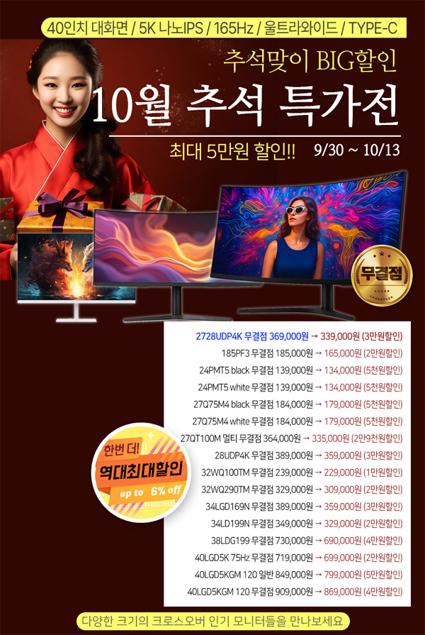 2728UDP4K 무결점 369,000원 → 339,000원 (3만원할인)