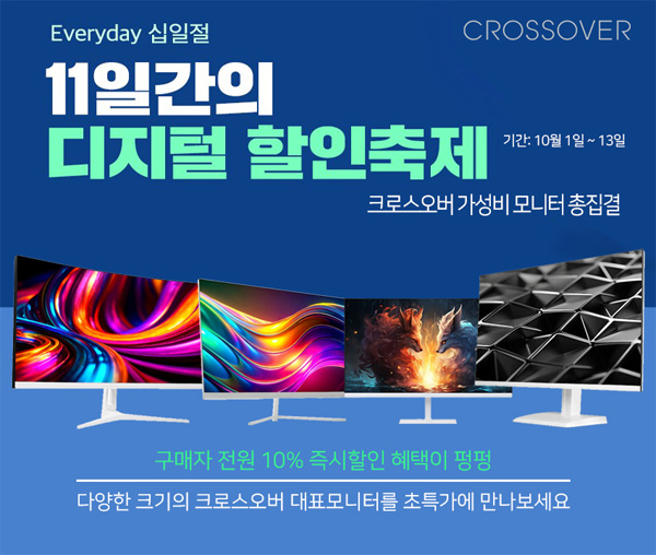 크로스오버는 자사의 인기 게이밍 및 고해상도 모니터 34종을 대상으로 11번가 2025년 10월 에브리데이 십일절 이벤트를 진행한다고 밝혔다.
