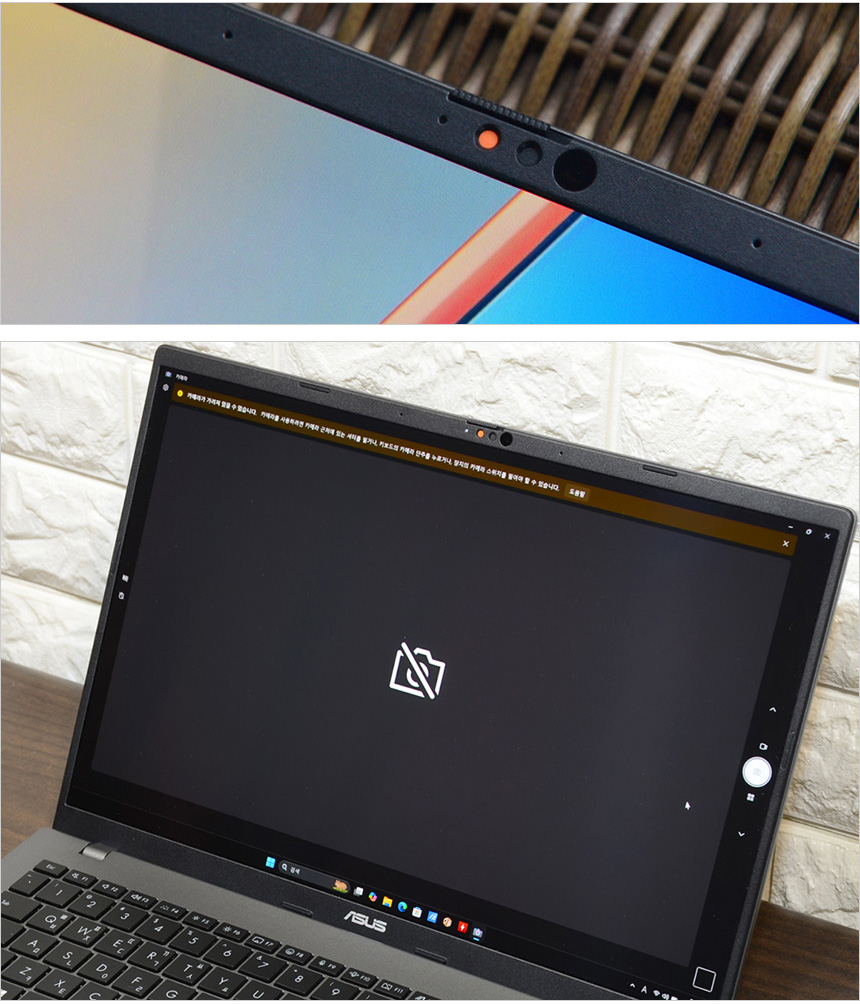 웹캠을 이용한 사생활 침해나 비주얼 해킹을 원천적으로 차단할 수 있도록 프라이버시 셔터가 장착된 것을 확인할 수 있다. 물리적으로 카메라를 가려주기 때문에 해킹으로 노트북 권한을 획득 하더라도 사용자나 주변 상황을 전혀 볼수 없다. (동영상을 통해 자세히 확인하기 바란다.)