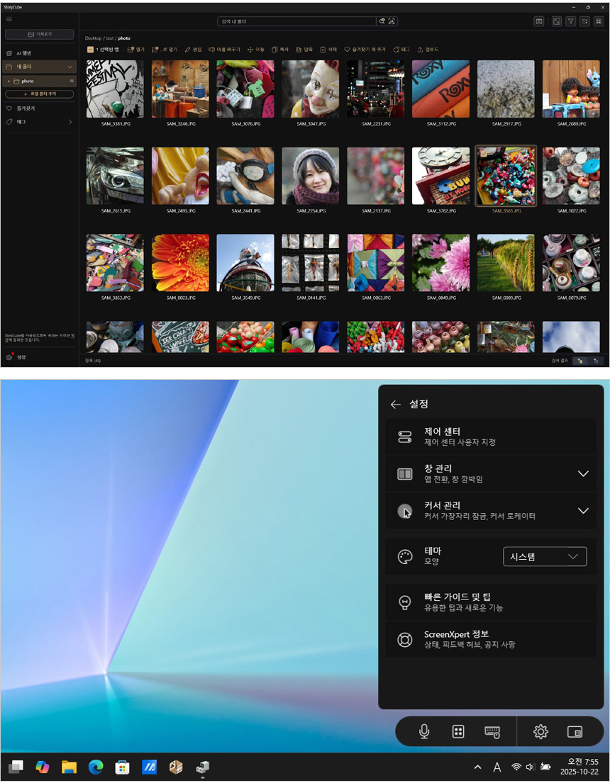 직관적인 AI 도구 MUSETREE를 사용하면 아이디어를 이미지로 빠르게 변환할 수 있으며 그래픽 사용호작용을 통해 더 많은 크리에이티브를 생성할 수 있으며 AI S/W ASUS StoryCube는 꾸준히 쌓이는 사진과 비디오 영상을 더 스마트하고 빠르게 관리할 수 있는 프로그램으로 연결된 장치나 클라우드에 데이터를 손쉽게 가져오거나 내보낼 수 있으며 이름이나 태그, 장치, 위치, 타임라인 등을 통해 손쉽게 원하는 파일을 검색할 수 있다. 또한 노트북을 더 편하게 사용할 수 있도록 스크린엑스퍼트를 지원한다.