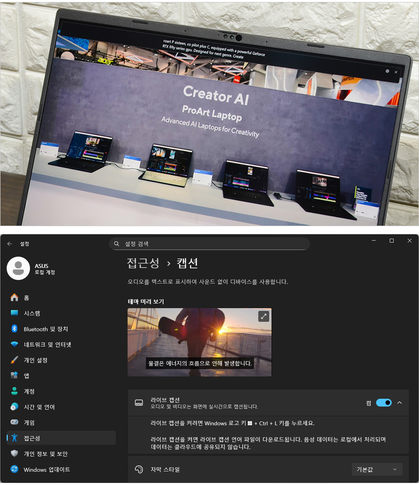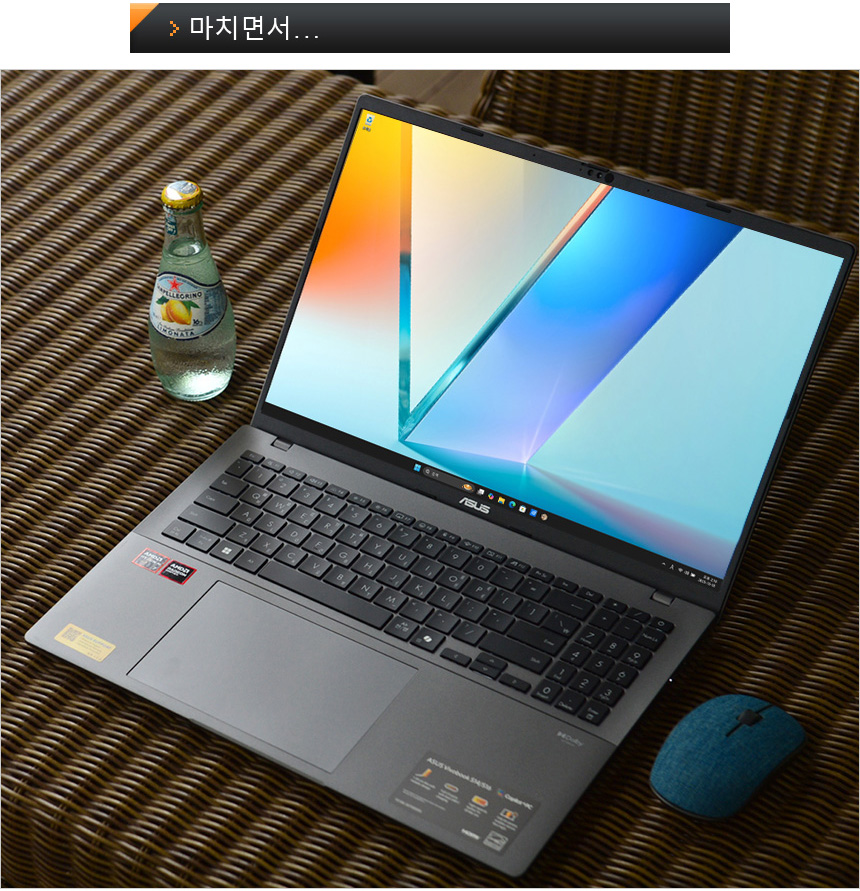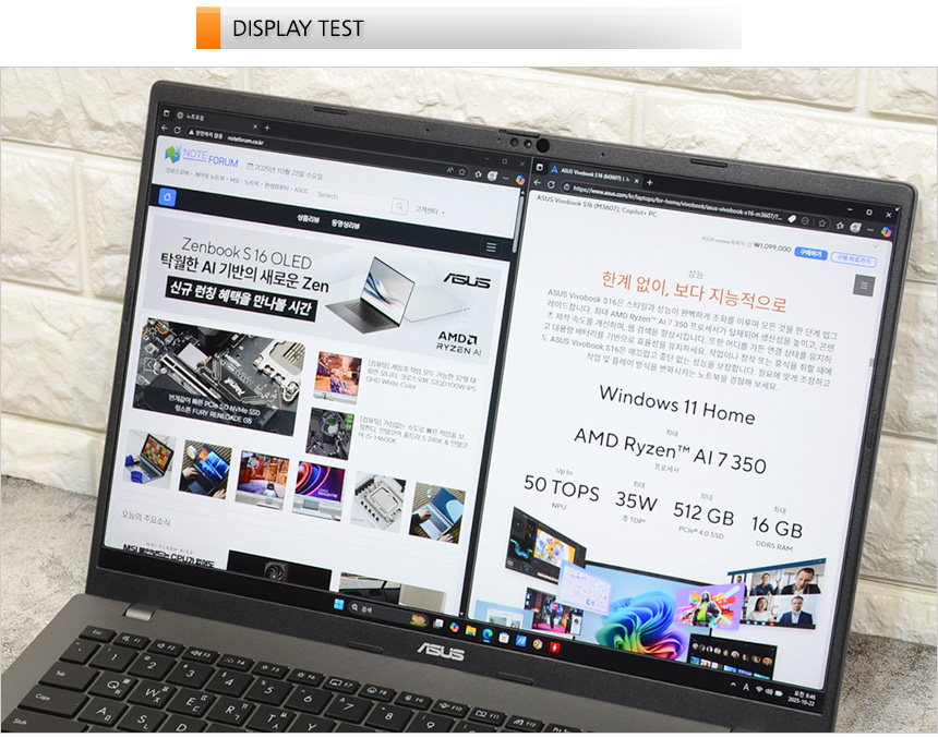 리뷰를 진행하는 ASUS 비보북 S16 M3607KA-SH035W 는 최대 50 TOPS 로컬처리 성능을 갖춘 AMD의 최신 모바일 프로세서 라이젠 AI 7 350 프로세서를 탑재해 다양한 Ai 기능을 부드럽게 실행할 수 있다. 코파일럿 전용키를 눌러 보고서 작성이나 리포트 등을 작성할 때 도움을 받을 수 있으며 스토리큐브와 뮤즈트리 등의 자체 AI 어플리케이션을 제공해 유용하게 활용할 수 있다.