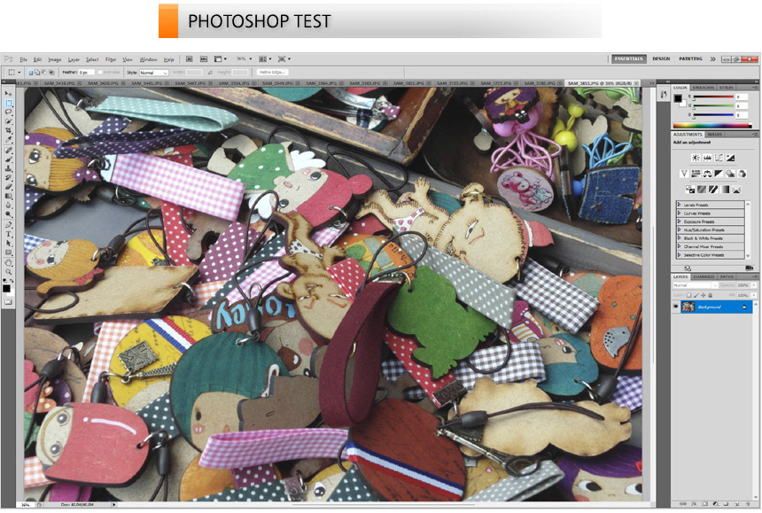 포토샵을 이용해 사진편집 테스트를 진행하고 있는 모습으로 고성능 프로세서와 16GB 메모리를 지원해 부드럽게 작업할 수 있었다. 이 제품은 작업에 특화된 16:10 비율을 지원하며 선명도가 상당히 뛰어나 사진편집 뿐만 아니라 디자인 등의 작업용으로도 활용할 수 있다. @ 46장의 원본 사진 (총 180MB) 을 로딩하는데 걸리는 시간을 측정했는데 15초가 소요되었다.