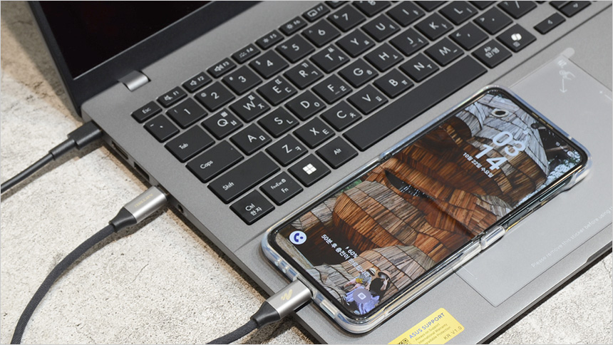 C타입 단자는 상시전원을 지원해 노트북이 꺼진 상태에서도 스마트폰을 충전할 수 있다. (단, 노트북 전원은 연결되어 있어야 한다.)
