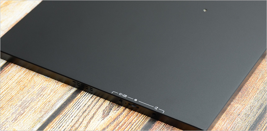 425 x 250 x 10 mm 의 크기와 1,101g 무게를 지원한다. 15.6형 이하의 포터블 모니터와 비교하면 크기가 상당히 커 주로 집이나 사무실에서 사용하는 것이 적합하지만 도입부에서 말씀드린 것과 같이 슬림 베젤을 적용해 크기를 최소화 하고 무게도 1Kg을 살짝 넘는 수준으로 백팩에 넣고 다니며 외부에서도 사용할 수 있다.