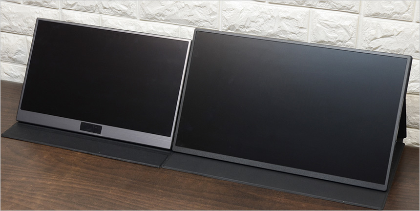 15.6형 포터블 모니터와 크기를 비교한 모습으로 차이가 확연한 것을 확인할 수 있다. 작고 답답한 기존의 포터블 모니터의 크기가 아쉬웠다면 좋은 대안이 될 것이다.