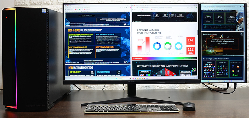 PC나 노트북을 이용해 작업을 할 때 모니터의 갯수가 많아질수록 효율성은 높아진다. 보통 2개 이상의 창을 띄어두고 사용하는 것이 일반적인데 하나의 모니터만 사용할 경우 번거롭게 창을 계속 변경해야 하는데 반해 2개나 3개의 모니터를 사용할 경우 번거로운 작업없이 원하는 정보를 빠르게 확인할 수 있기 때문이다.